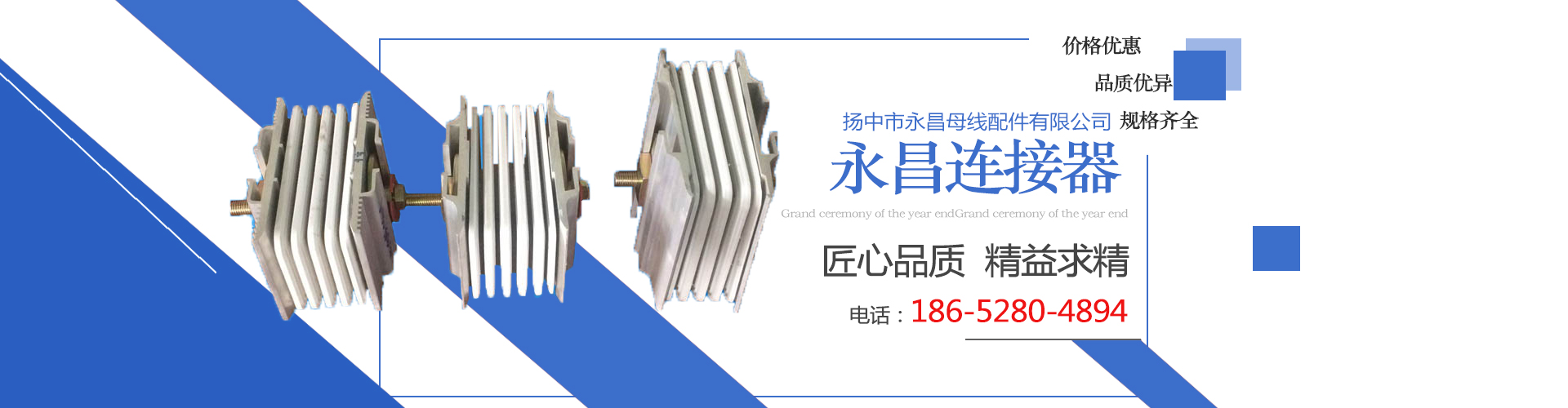 揚中市永昌母線配件有限公司,是集設計、制造、銷售于一體的綜合性專業生產廠家。提供母線、橋架配件及其它電氣配套附件售后維護全程服務。  客戶是企業的生存之源,盡可能地滿足客戶需求是我們永恒的追求。 正是由于產品具有結構合理、運行可靠、壽命長等特點,還有我們熱情周到的售前、售后服務,使我們的產品在各個行業深受用戶信賴。